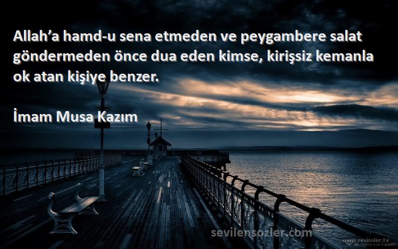 "İmam Musa Kazım - Allah’a hamd-u sena etmeden ve peygambere salat göndermeden önce dua eden kimse, kirişsiz kemanla ok atan kişiye benzer." hakkında yaptığınız yorumlar da hakeret içeren yada onur kırıcı cümleler olmamalıdır. Lütfen sanata saygı çerçevesinde yorum yapınız. Diğer tüm sözlerde olduğu gibi "İmam Musa Kazım - Allah’a hamd-u sena etmeden ve peygambere salat göndermeden önce dua eden kimse, kirişsiz kemanla ok atan kişiye benzer." Sözlerine atılan hiçbir hakaret, küfür, argo içeren yorum kabul etmeyecektir. Göstermiş olduğunuz hassasiyetin tüm sözler için geçerli olduğunu unutmayınız.