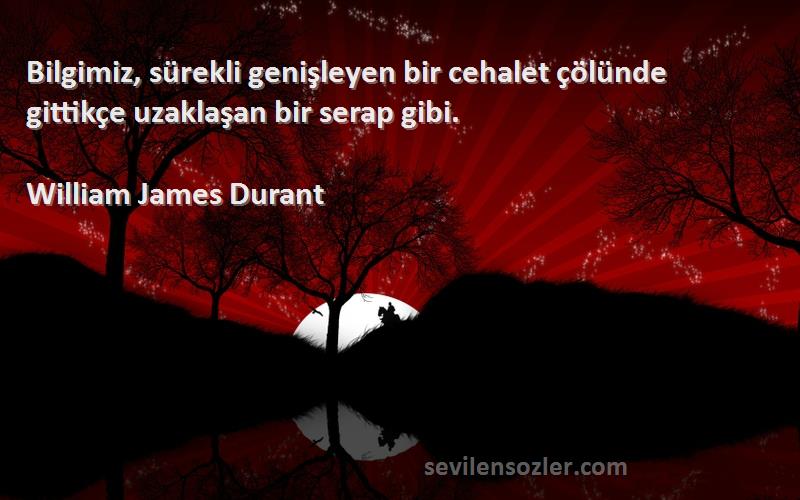 "William James Durant - Bilgimiz, sürekli genişleyen bir cehalet çölünde gittikçe uzaklaşan bir serap gibi." hakkında yaptığınız yorumlar da hakeret içeren yada onur kırıcı cümleler olmamalıdır. Lütfen sanata saygı çerçevesinde yorum yapınız. Diğer tüm sözlerde olduğu gibi "William James Durant - Bilgimiz, sürekli genişleyen bir cehalet çölünde gittikçe uzaklaşan bir serap gibi." Sözlerine atılan hiçbir hakaret, küfür, argo içeren yorum kabul etmeyecektir. Göstermiş olduğunuz hassasiyetin tüm sözler için geçerli olduğunu unutmayınız.
