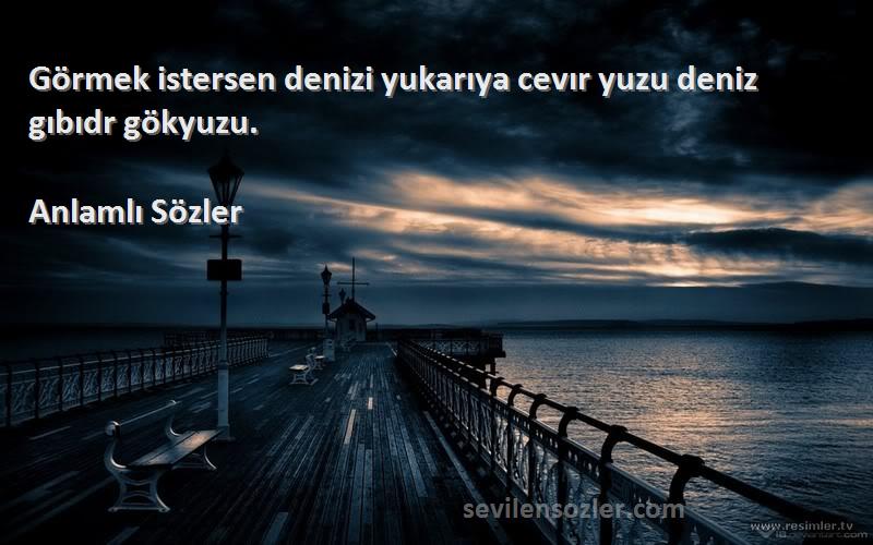 "Anlamlı Sözler - Görmek istersen denizi yukarıya cevır yuzu deniz gıbıdr gökyuzu." hakkında yaptığınız yorumlar da hakeret içeren yada onur kırıcı cümleler olmamalıdır. Lütfen sanata saygı çerçevesinde yorum yapınız. Diğer tüm sözlerde olduğu gibi "Anlamlı Sözler - Görmek istersen denizi yukarıya cevır yuzu deniz gıbıdr gökyuzu." Sözlerine atılan hiçbir hakaret, küfür, argo içeren yorum kabul etmeyecektir. Göstermiş olduğunuz hassasiyetin tüm sözler için geçerli olduğunu unutmayınız.
