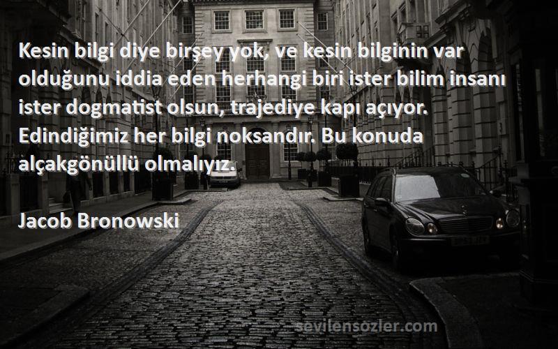 "Jacob Bronowski - Kesin bilgi diye birşey yok, ve kesin bilginin var olduğunu iddia eden herhangi biri ister bilim insanı ister dogmatist olsun, trajediye kapı açıyor. Edindiğimiz her bilgi noksandır. Bu konuda alçakgönüllü olmalıyız." hakkında yaptığınız yorumlar da hakeret içeren yada onur kırıcı cümleler olmamalıdır. Lütfen sanata saygı çerçevesinde yorum yapınız. Diğer tüm sözlerde olduğu gibi "Jacob Bronowski - Kesin bilgi diye birşey yok, ve kesin bilginin var olduğunu iddia eden herhangi biri ister bilim insanı ister dogmatist olsun, trajediye kapı açıyor. Edindiğimiz her bilgi noksandır. Bu konuda alçakgönüllü olmalıyız." Sözlerine atılan hiçbir hakaret, küfür, argo içeren yorum kabul etmeyecektir. Göstermiş olduğunuz hassasiyetin tüm sözler için geçerli olduğunu unutmayınız.