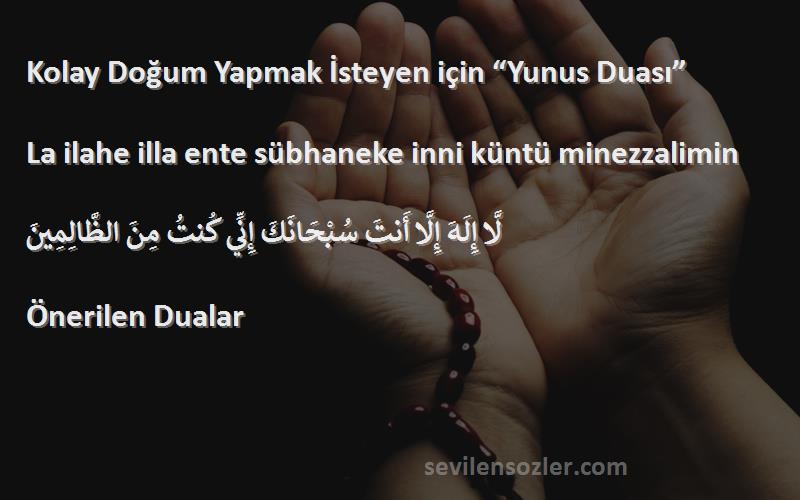 "Önerilen Dualar - Kolay Doğum Yapmak İsteyen için “Yunus Duası” La ilahe illa ente sübhaneke inni küntü minezzalimin لَّا إِلَهَ إِلَّا أَنتَ سُبْحَانَكَ إِنِّي كُنتُ مِنَ الظَّالِمِينَ" hakkında yaptığınız yorumlar da hakeret içeren yada onur kırıcı cümleler olmamalıdır. Lütfen sanata saygı çerçevesinde yorum yapınız. Diğer tüm sözlerde olduğu gibi "Önerilen Dualar - Kolay Doğum Yapmak İsteyen için “Yunus Duası” La ilahe illa ente sübhaneke inni küntü minezzalimin لَّا إِلَهَ إِلَّا أَنتَ سُبْحَانَكَ إِنِّي كُنتُ مِنَ الظَّالِمِينَ" Sözlerine atılan hiçbir hakaret, küfür, argo içeren yorum kabul etmeyecektir. Göstermiş olduğunuz hassasiyetin tüm sözler için geçerli olduğunu unutmayınız.