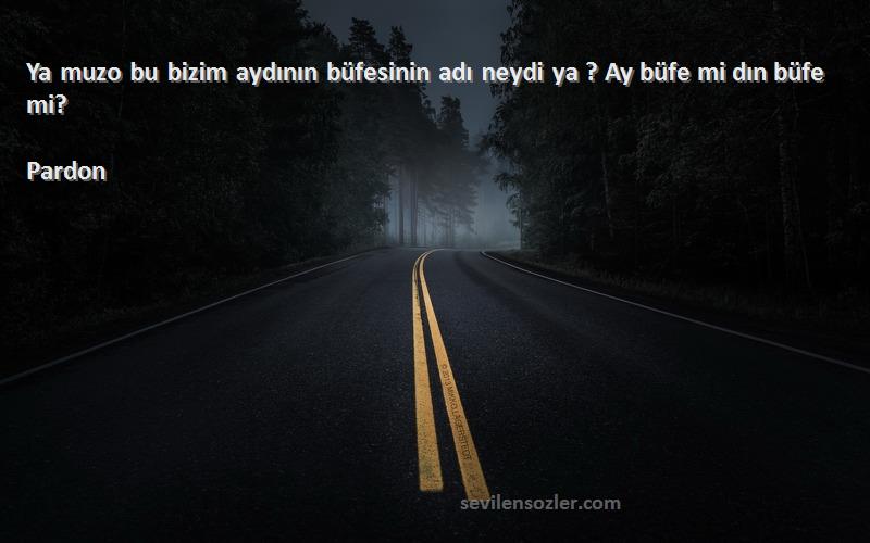 "Pardon - Ya muzo bu bizim aydının büfesinin adı neydi ya ? Ay büfe mi dın büfe mi?" hakkında yaptığınız yorumlar da hakeret içeren yada onur kırıcı cümleler olmamalıdır. Lütfen sanata saygı çerçevesinde yorum yapınız. Diğer tüm sözlerde olduğu gibi "Pardon - Ya muzo bu bizim aydının büfesinin adı neydi ya ? Ay büfe mi dın büfe mi?" Sözlerine atılan hiçbir hakaret, küfür, argo içeren yorum kabul etmeyecektir. Göstermiş olduğunuz hassasiyetin tüm sözler için geçerli olduğunu unutmayınız.